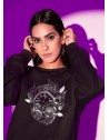 Το σχέδιο Relative Time εμφανίζεται στο μπροστινό μέρος αυτού του T-shirt, σαν ένα σκοτεινό φυλαχτό: η Arachne σύμβολο δύναμης, ιστού και ισορροπίας στον κυκλικό χρόνο.